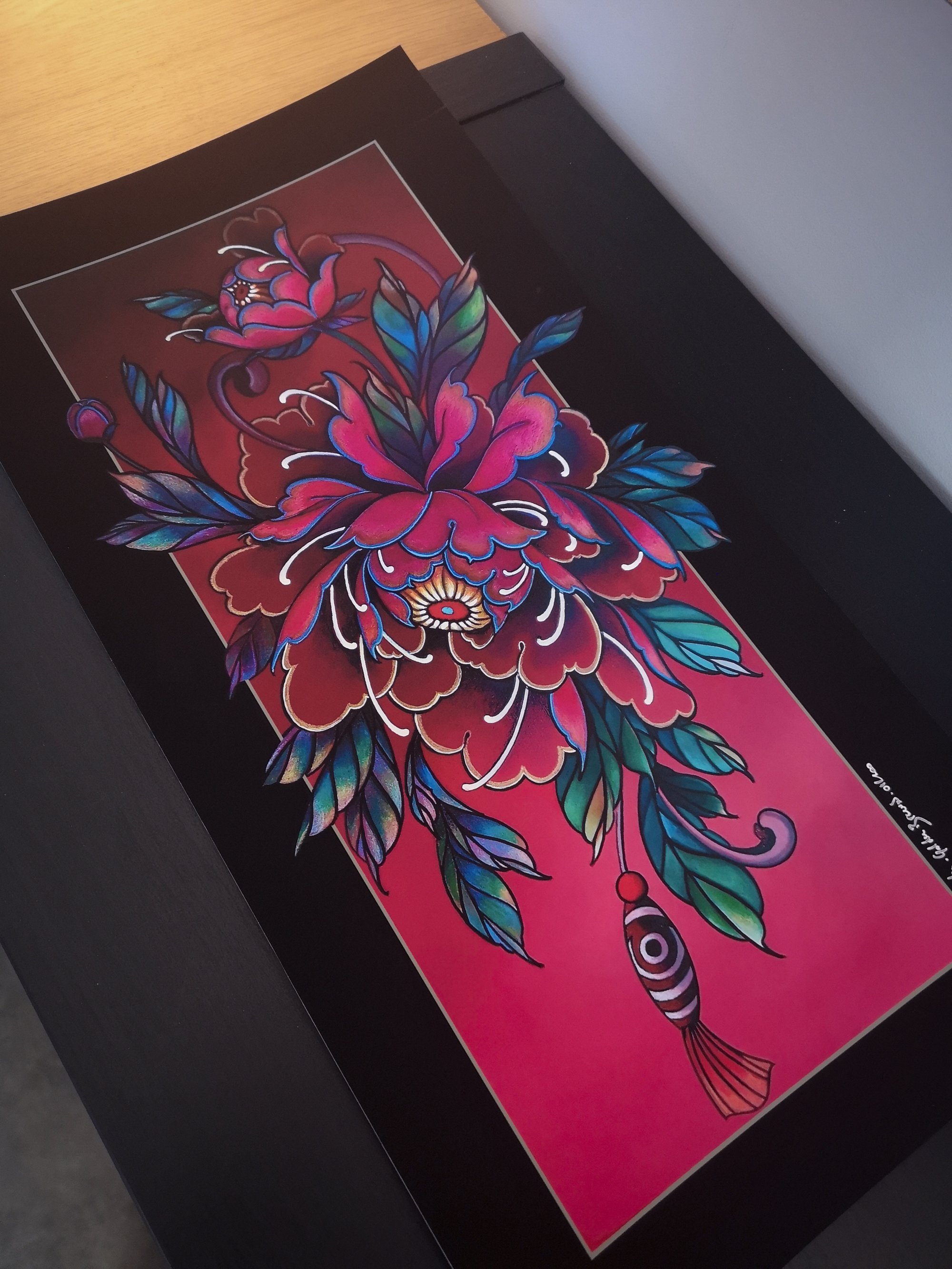 Limited Edition of 100 copy signed & numbered High quality Giclee print Size 24 x 47cm ( 9,44 x 18,50 inch ) on Velvet fine Art paper 260g According to the original painting "Dzo" Acrylic and color Pencil on Wood (30x60cm) 2019